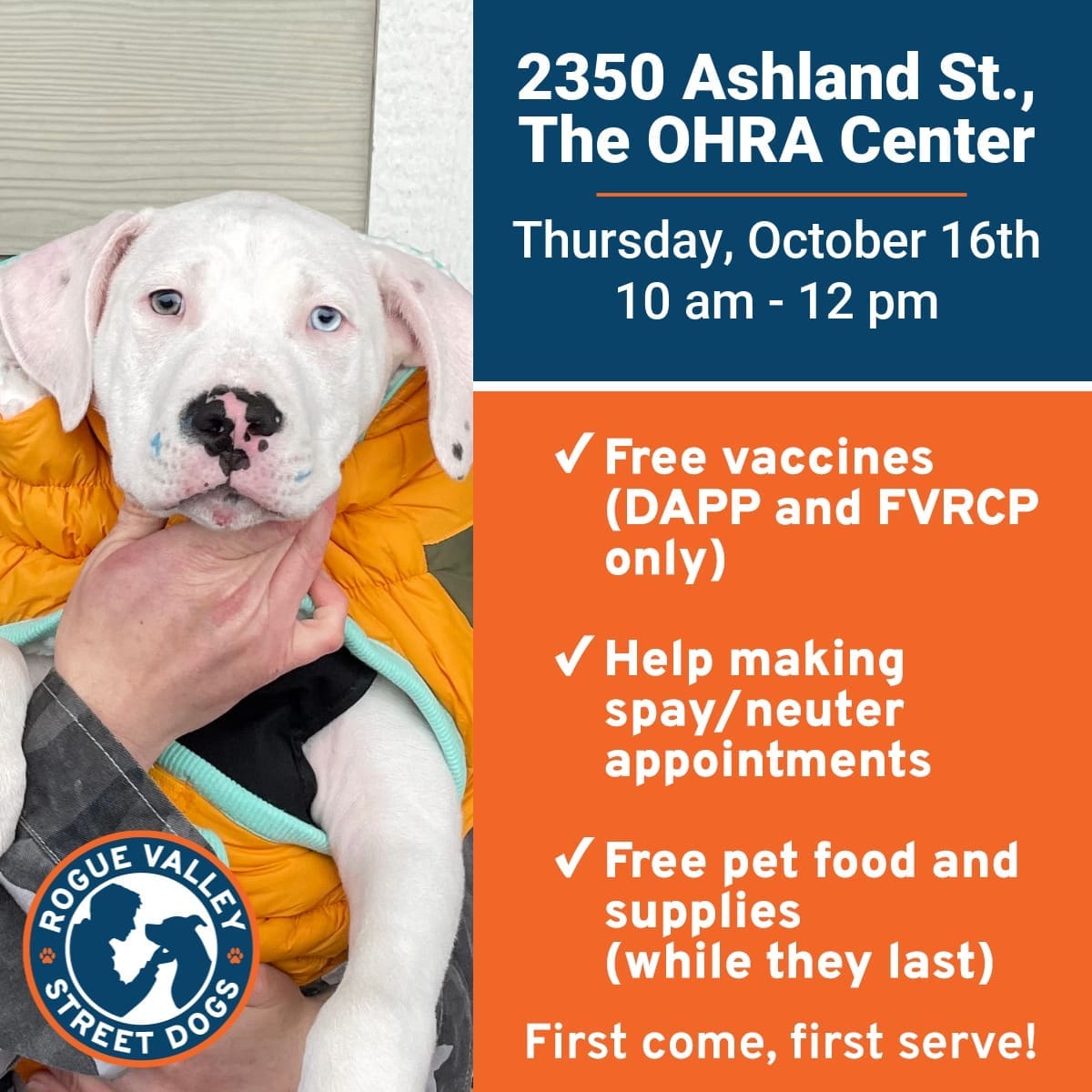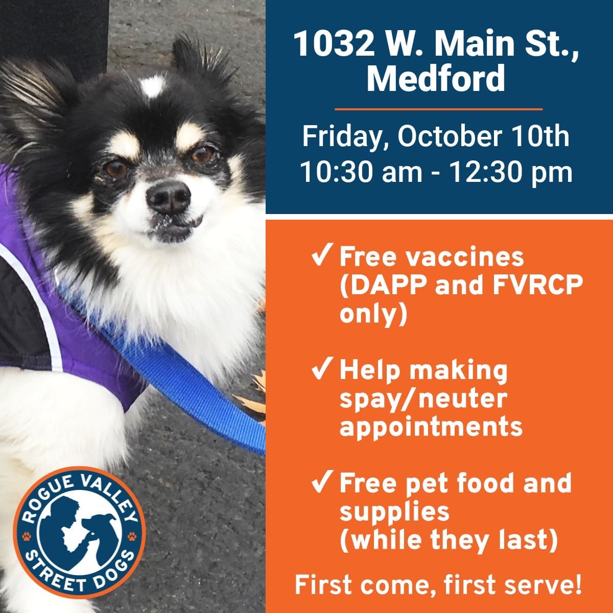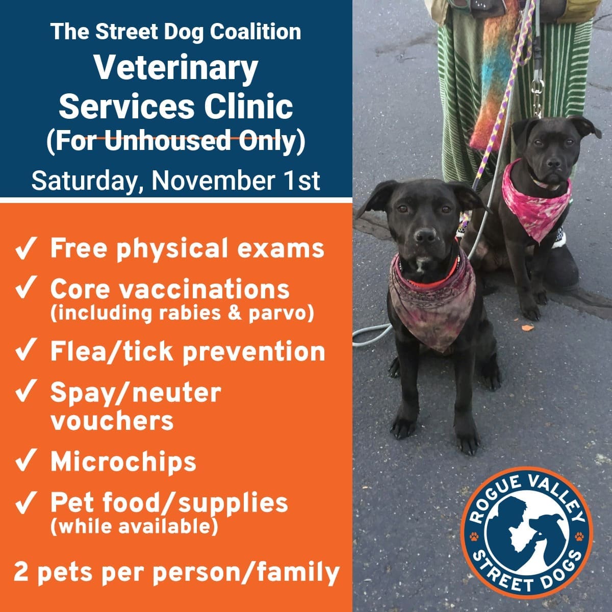 FOR THOSE EXPERIENCING HOMELESSNESS ONLY: Rogue Valley Street Dogs is excited to support The Street Dog Coalition as they bring a free veterinary clinic for those experiencing homelessness to our area! Location: The United Way, 60 Hawthorne St, Medford Time: 9:00 AM to 12:00 PM The Street Dog Coalition is offering: Free physical exams Core […]